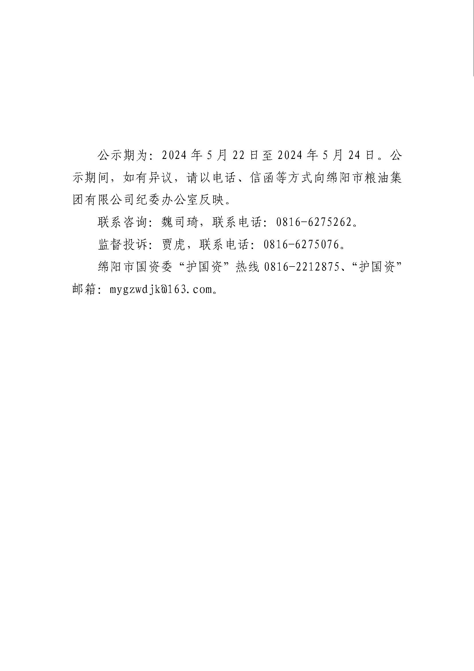 绵阳市粮油集团有限公司关于招聘子(分)公司营销总监等岗位拟录用人员的公示
